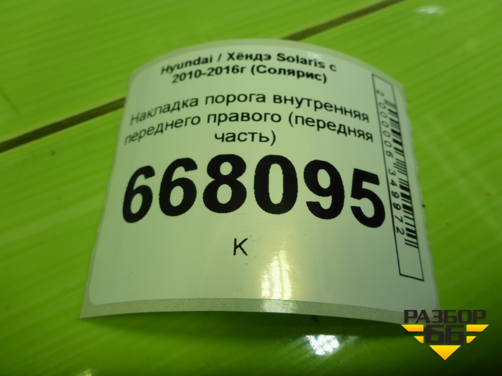 Накладка порога внутренняя переднего правого (передняя часть) (858241R000) для Hyundai Solaris с 2010-2016г (Солярис) в Челябинске
