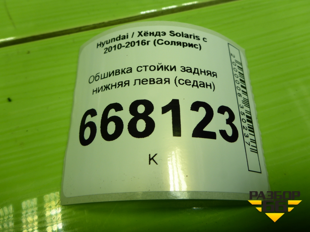 Обшивка стойки задняя нижняя левая (седан) (858901R000) для Hyundai Solaris с 2010-2016г (Солярис) в Челябинске