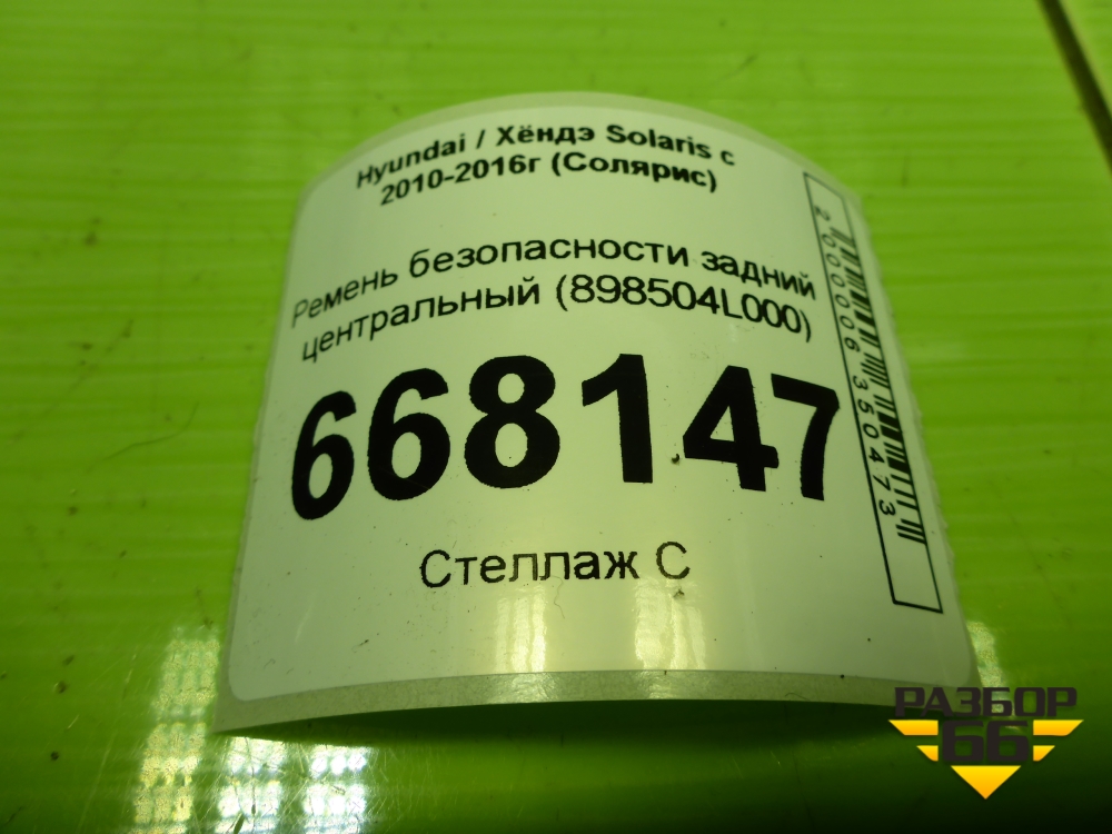 Ремень безопасности задний центральный (898504L000) для Hyundai Solaris с 2010-2016г (Солярис) в Челябинске