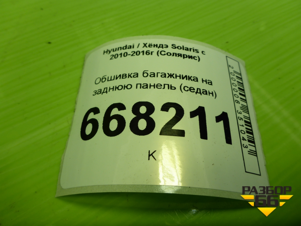 Обшивка багажника на заднюю панель (седан) (857711R000) для Hyundai Solaris с 2010-2016г (Солярис) в Челябинске