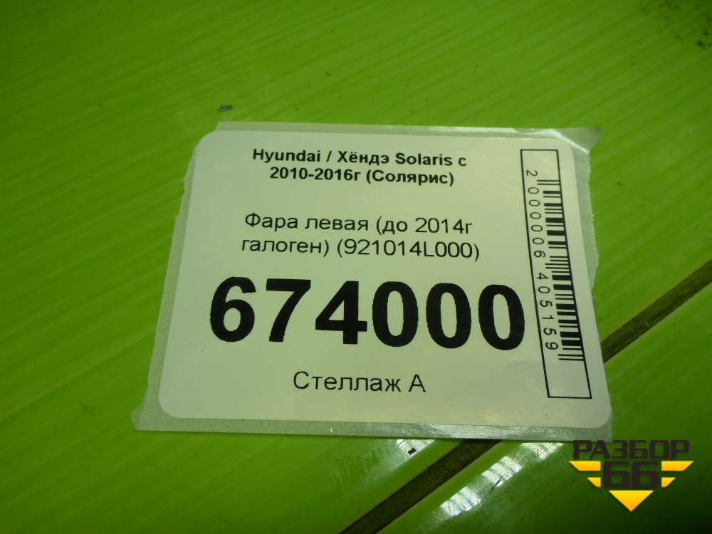 Фара левая (до 2014г галоген) (921014L000) для Hyundai Solaris с 2010-2016г (Солярис) в Челябинске