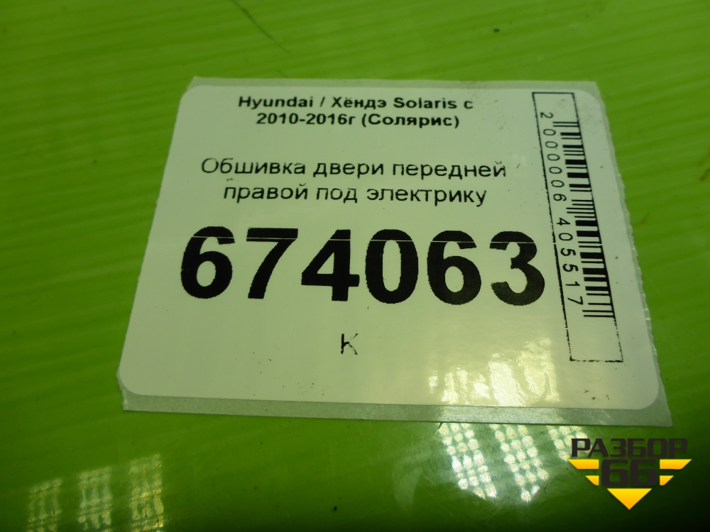 Обшивка двери передней правой под электрику (823604L010) для Hyundai Solaris с 2010-2016г (Солярис) в Челябинске