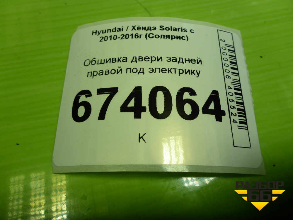 Обшивка двери задней правой под электрику (833604L010) для Hyundai Solaris с 2010-2016г (Солярис) в Челябинске