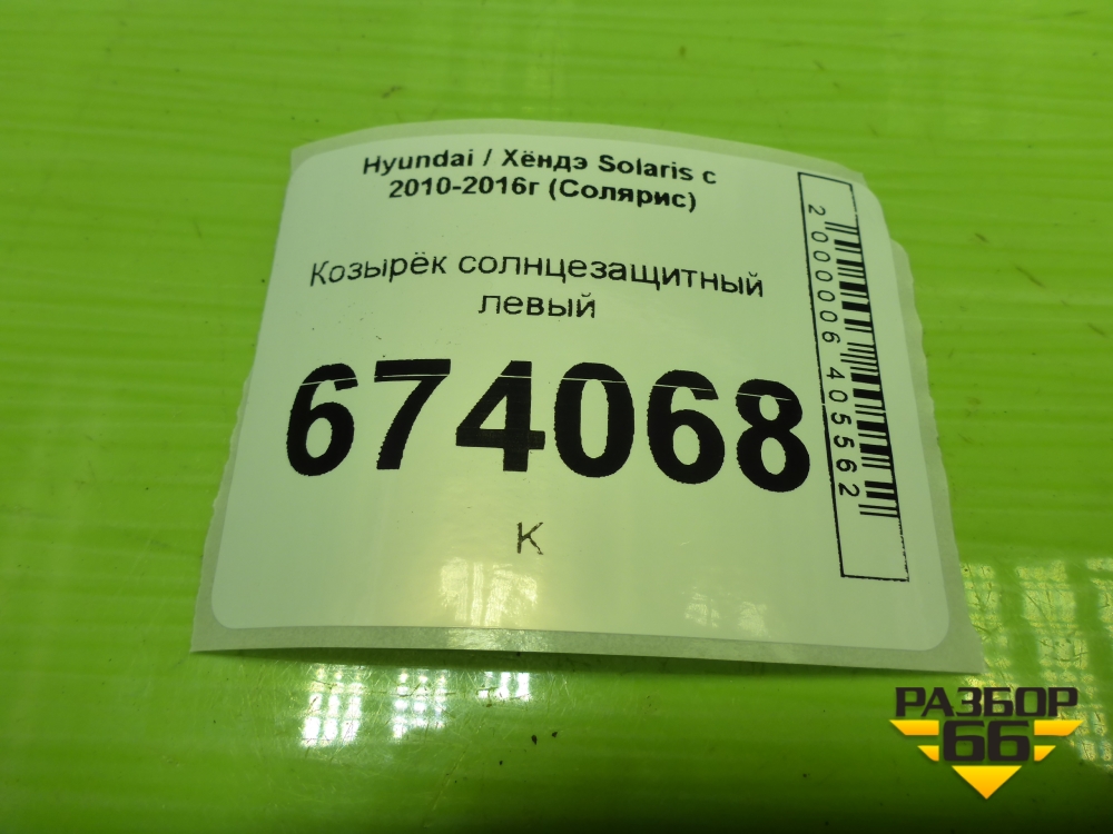Козырёк солнцезащитный левый для Hyundai Solaris с 2010-2016г (Солярис) в Челябинске