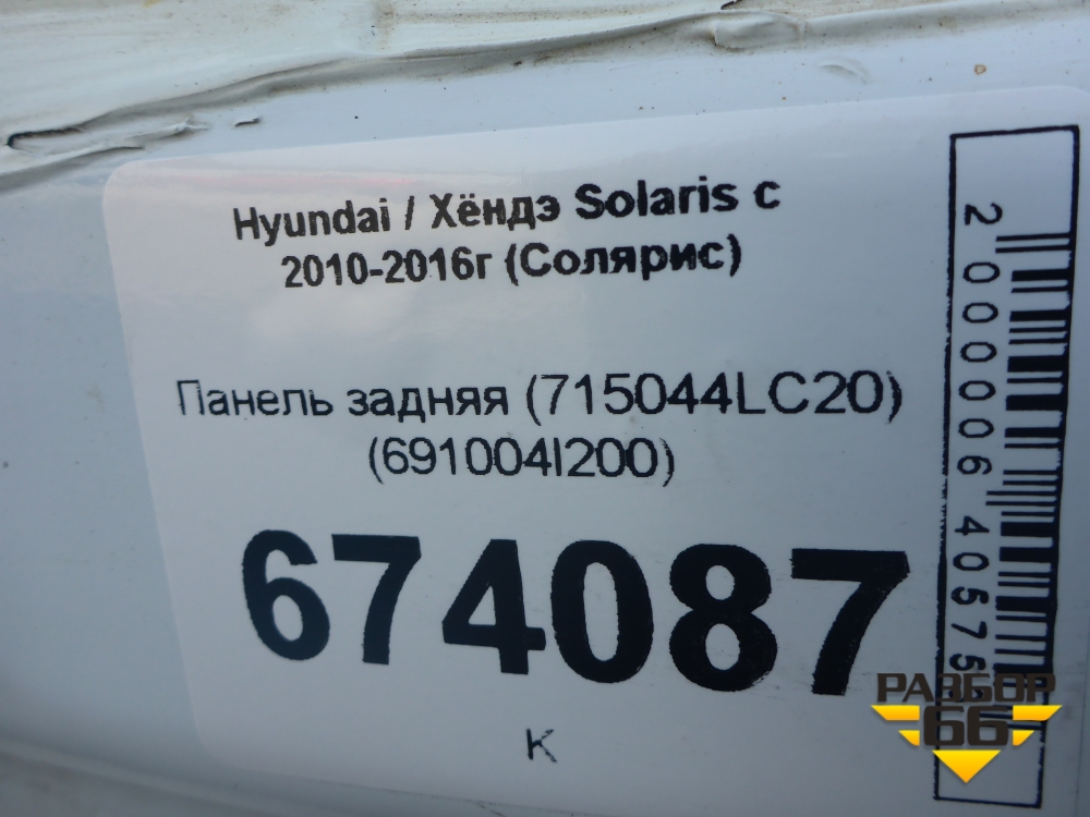 Панель задняя (хетчбэк) (691004L200) для Hyundai Solaris с 2010-2016г (Солярис) в Челябинске