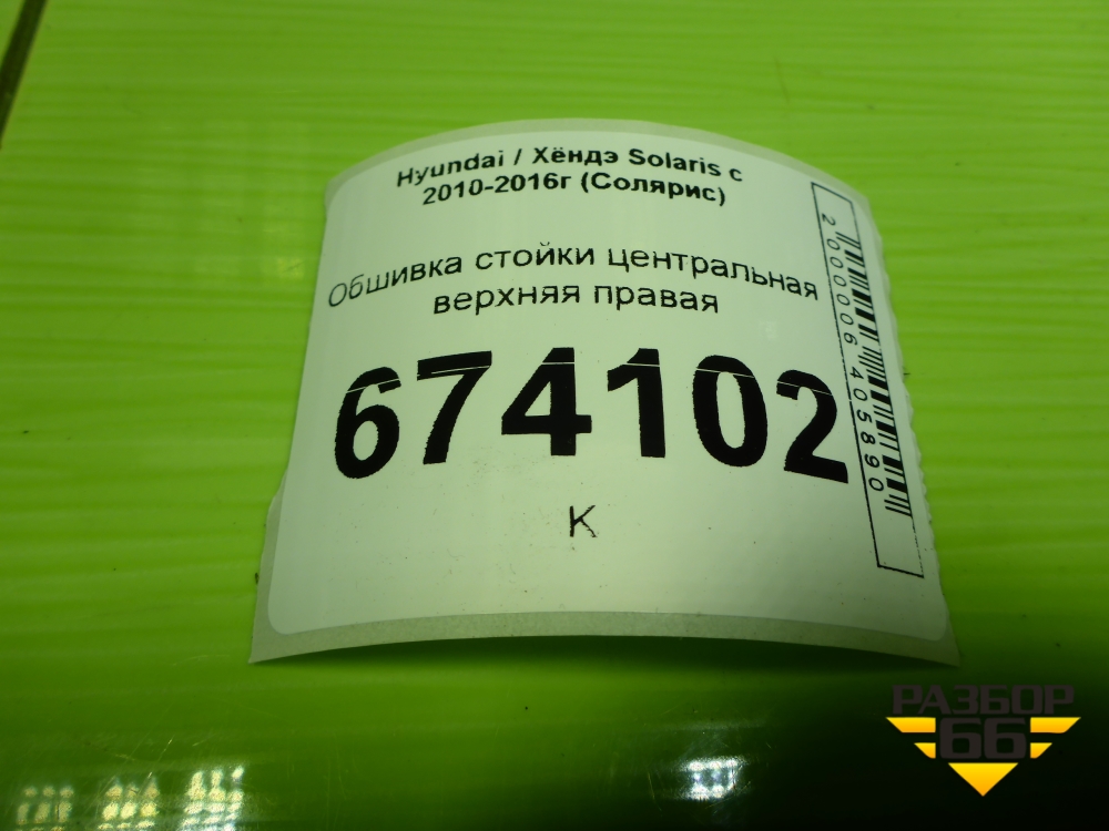 Обшивка стойки центральная верхняя правая (858401R100) для Hyundai Solaris с 2010-2016г (Солярис) в Челябинске