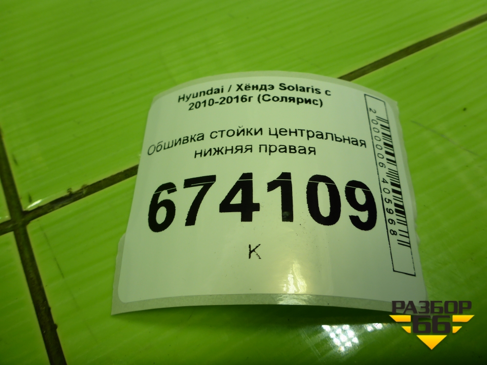 Обшивка стойки центральная нижняя правая (858451R000) для Hyundai Solaris с 2010-2016г (Солярис) в Челябинске