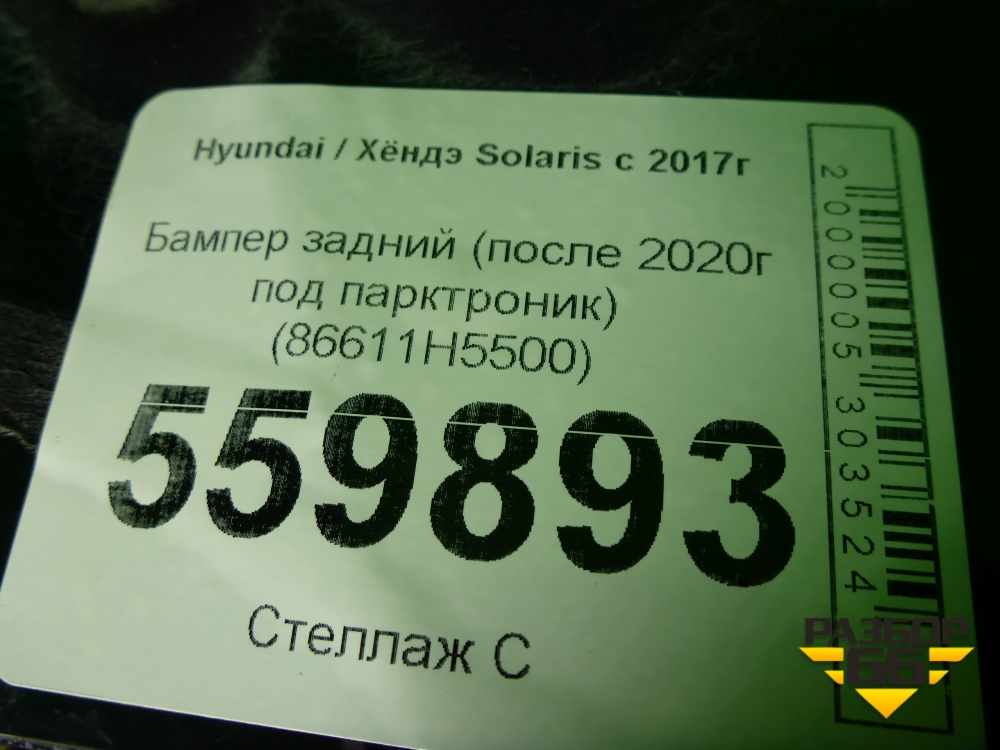 Бампер задний (после 2020г под парктроник) (86611H5500) для Hyundai Solaris с 2017г (Солярис) в Челябинске