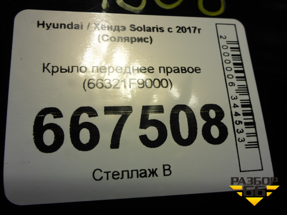 Крыло переднее правое (66321F9000) для Hyundai Solaris с 2017г (Солярис) в Челябинске