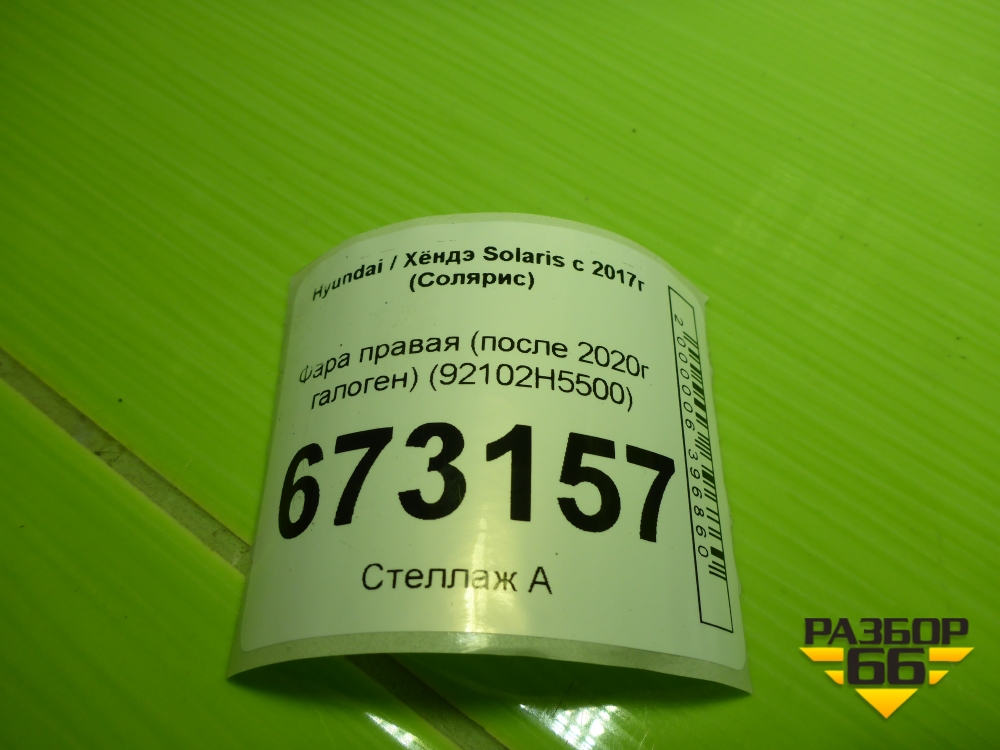 Фара правая (после 2020г галоген) (92102H5500) для Hyundai Solaris с 2017г (Солярис) в Челябинске