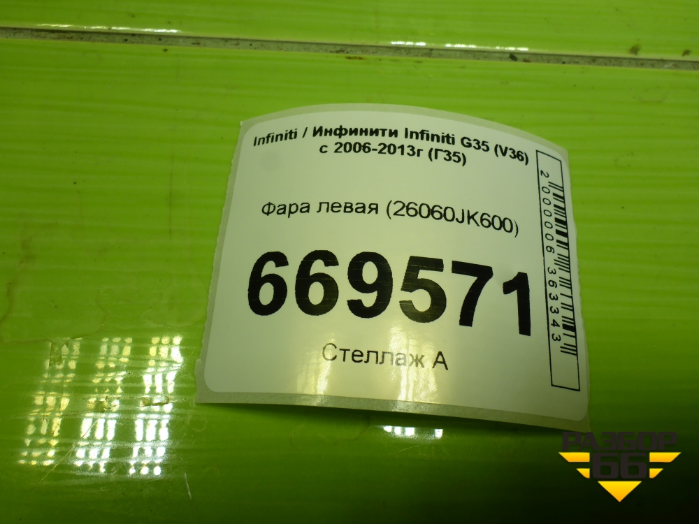 Фара левая (26060JK600) для Infiniti Infiniti G35 (V36) с 2006-2013г (Г35) в Челябинске