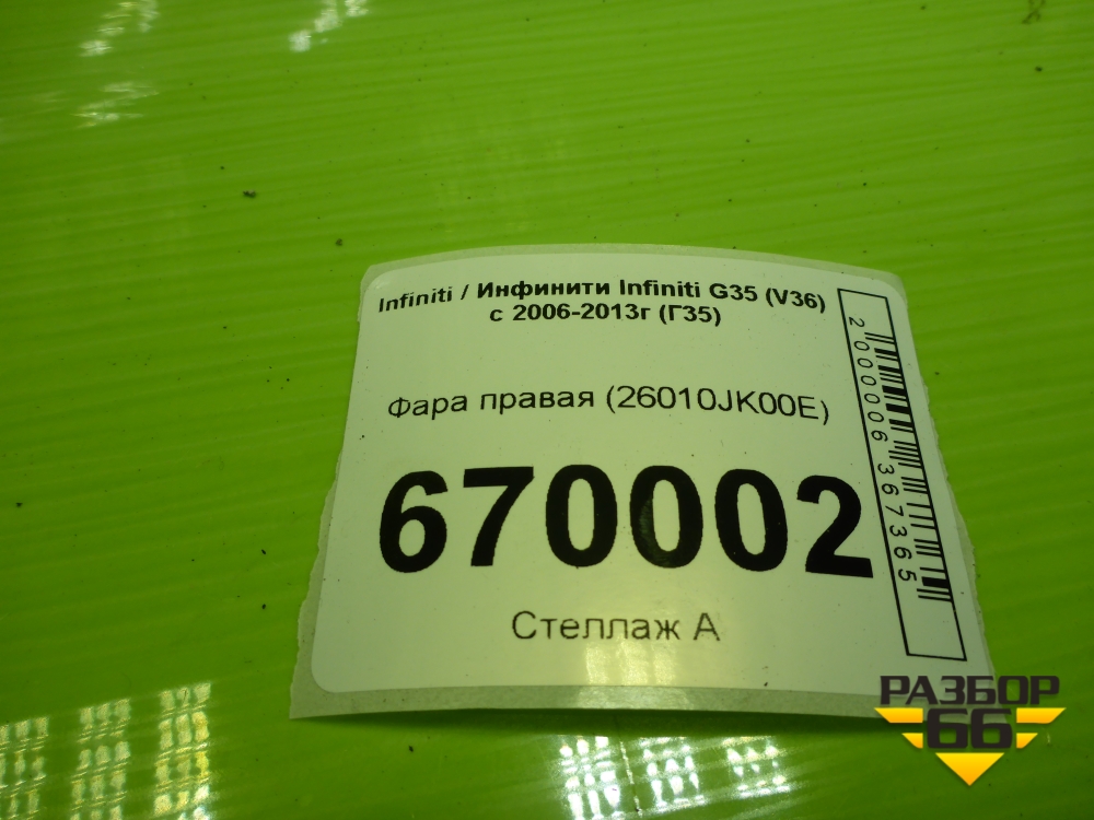 Фара правая (26010JK00E) для Infiniti Infiniti G35 (V36) с 2006-2013г (Г35) в Челябинске