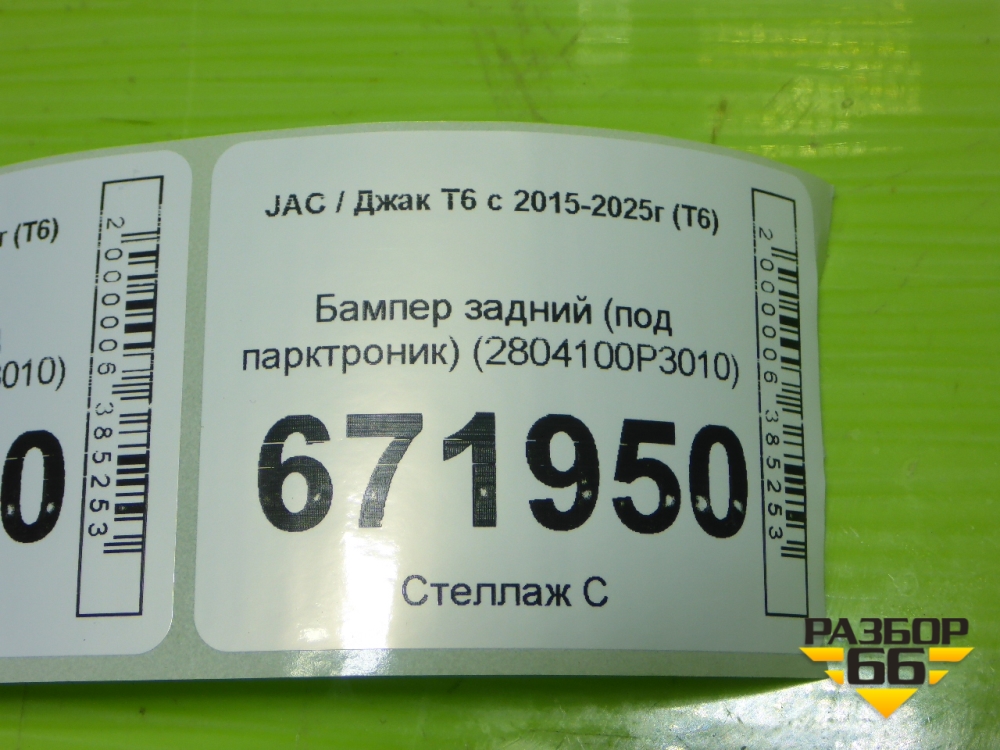 Бампер задний (под парктроник) (2804100P3010) для JAC T6 с 2015-2025г (Т6) в Челябинске