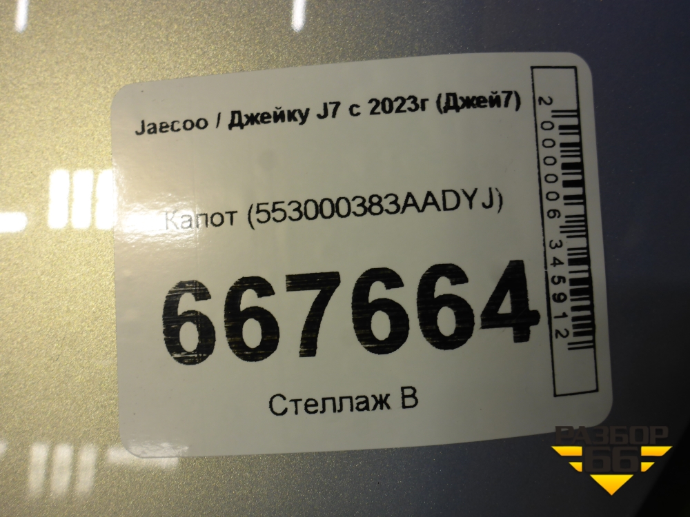 Капот (553000383AADYJ) для Jaecoo J7 с 2023г (Джей7) в Челябинске