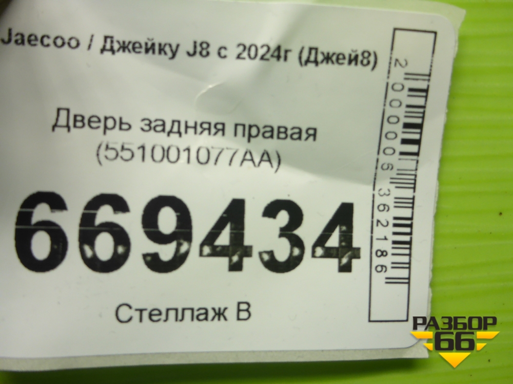 Дверь задняя правая (551001077AA) для Jaecoo J8 c 2024г (Джей8) в Челябинске