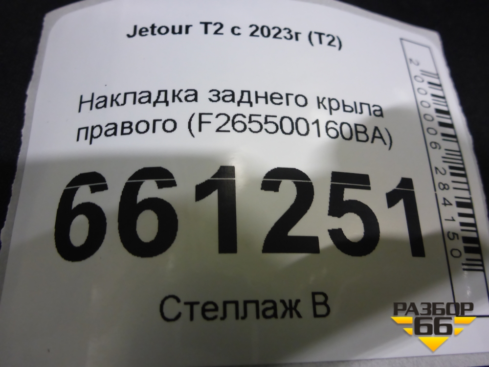 Накладка заднего крыла правого (F265500160BA) для Jetour T2 с 2023г (Т2) в Челябинске