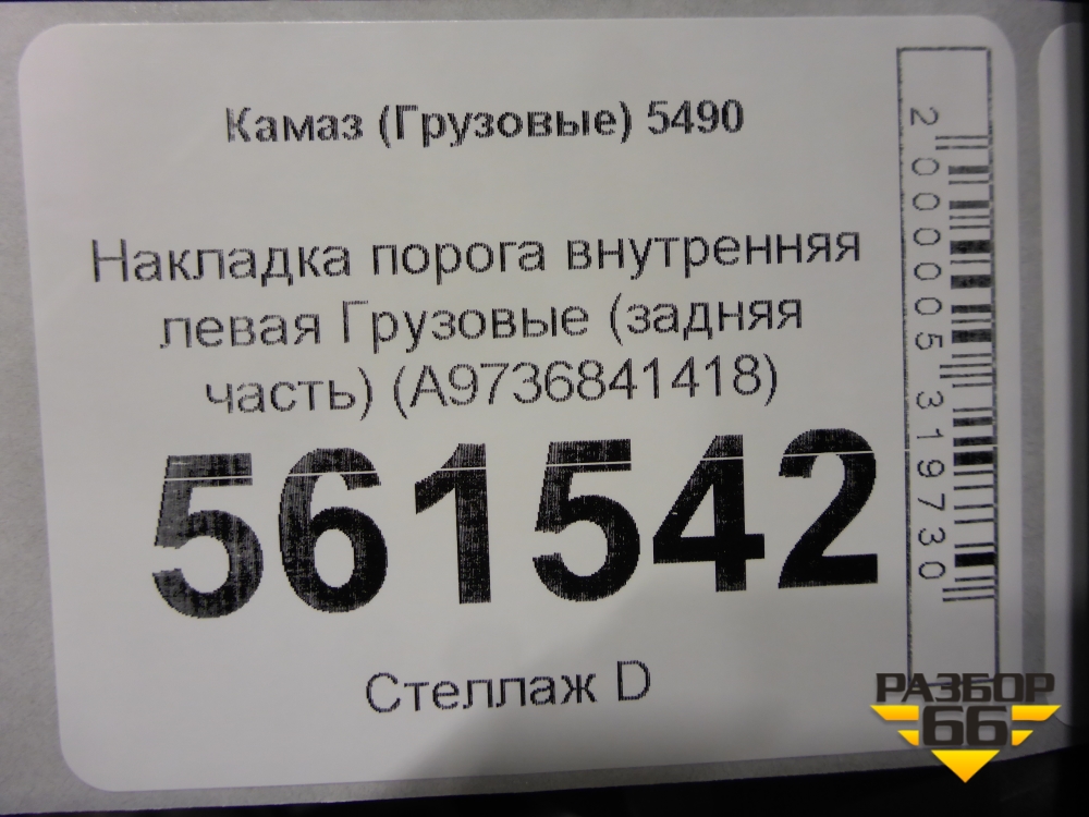Накладка порога внутренняя левая (задняя часть) (A9736841418) для Камаз 5490 в Челябинске
