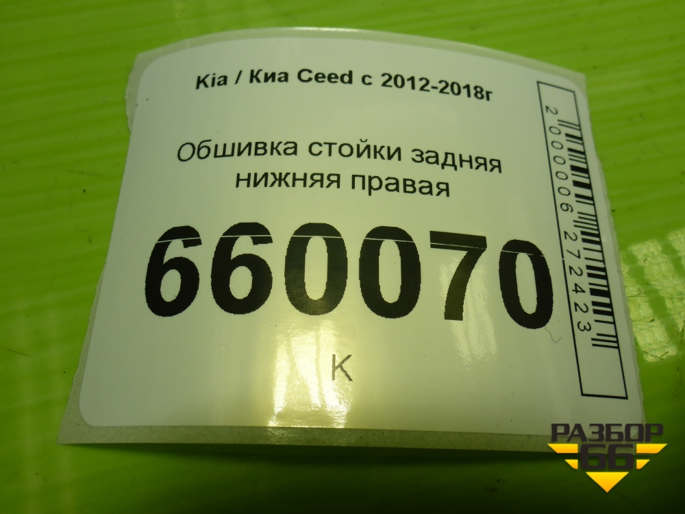 Обшивка стойки задняя нижняя правая (5-ти дверный хетчбэк) (85895A2010) для Kia Ceed с 2012-2018г (Сид 2) в Челябинске