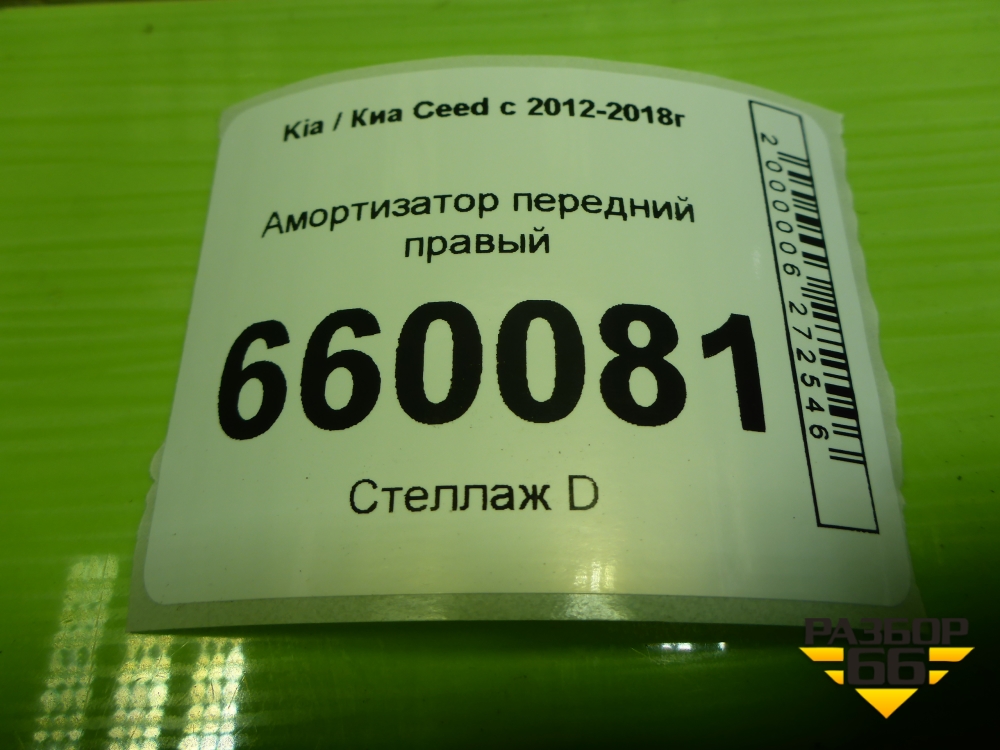 Амортизатор передний правый (54660A6510) для Kia Ceed с 2012-2018г (Сид 2) в Челябинске