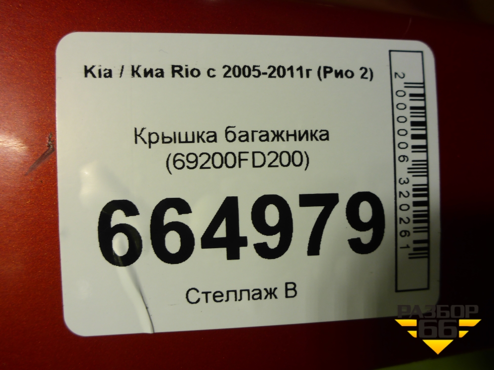 Крышка багажника (69200FD200) для Kia Rio с 2005-2011г (Рио 2) в Челябинске