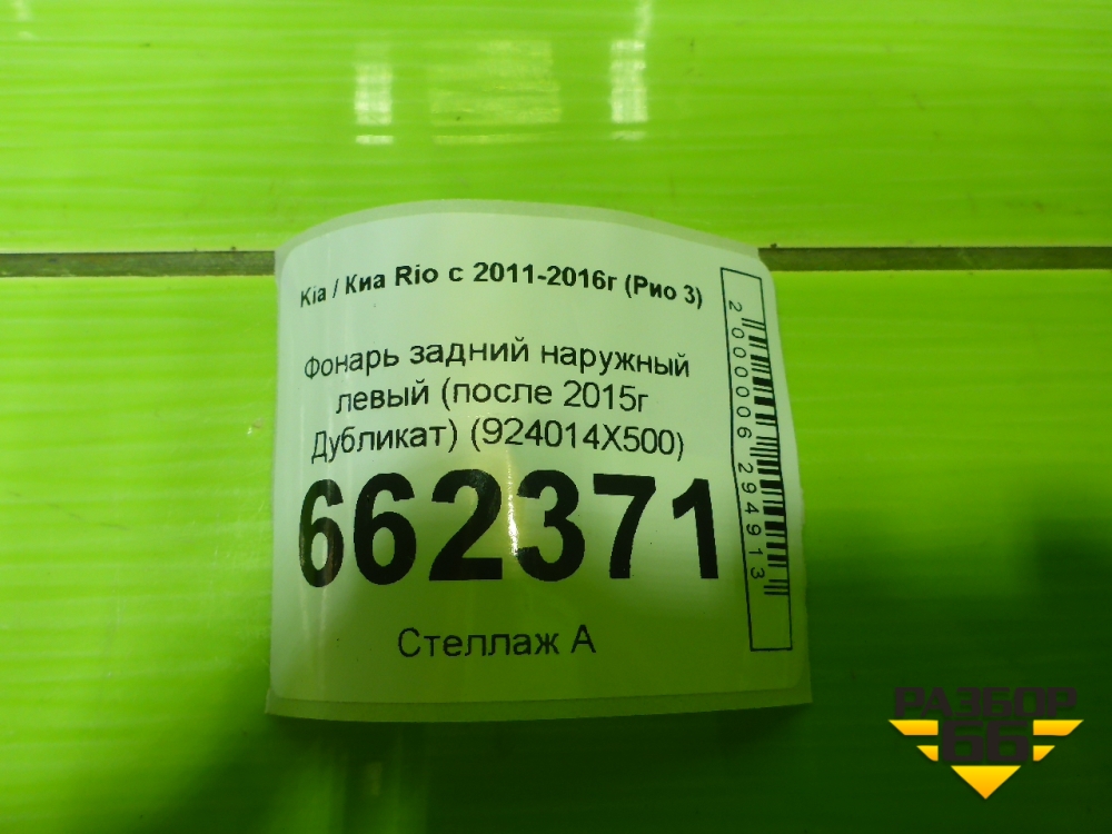 Фонарь задний наружный левый (после 2015г Дубликат) (924014X500) для Kia Rio с 2011-2016г (Рио 3) в Челябинске