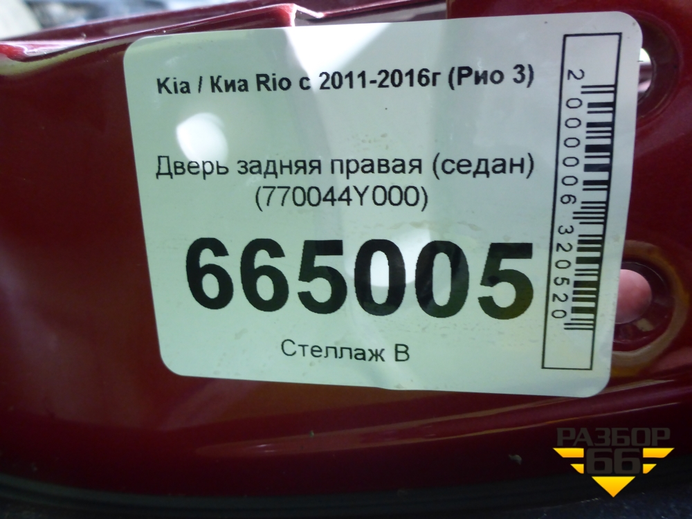 Дверь задняя правая (седан) (770044Y000) для Kia Rio с 2011-2016г (Рио 3) в Челябинске