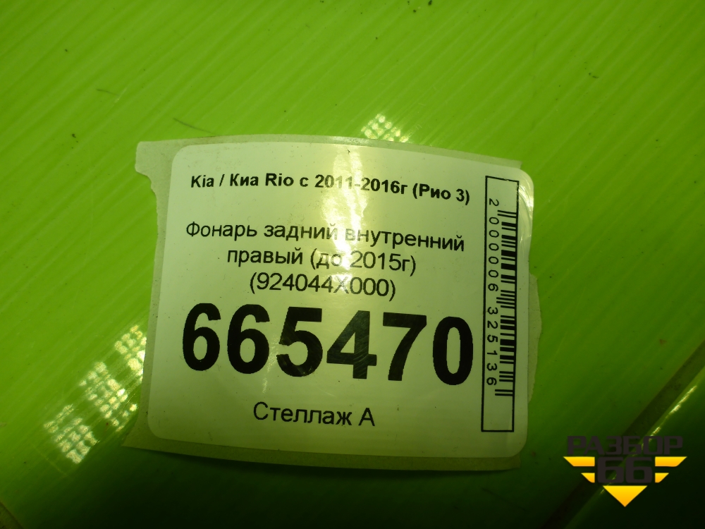 Фонарь задний внутренний правый (до 2015г) (924044X000) для Kia Rio с 2011-2016г (Рио 3) в Челябинске