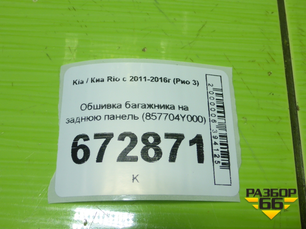 Обшивка багажника на заднюю панель (857704Y000) для Kia Rio с 2011-2016г (Рио 3) в Челябинске