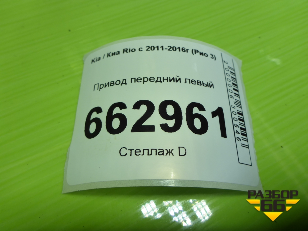 Привод передний левый (1.6л G4FC МКПП шлиц наруж-25,внутр-25) (495001R000) для Kia Rio с 2011-2016г (Рио 3) в Челябинске