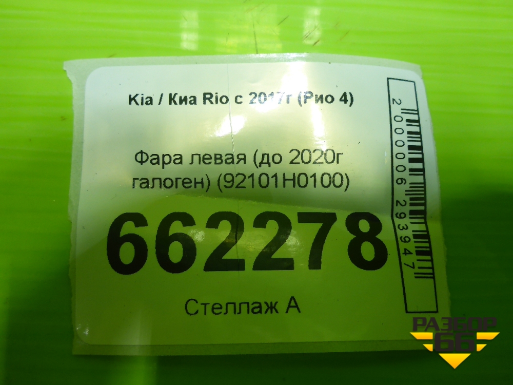 Фара левая (до 2020г галоген) (92101H0100) для Kia Rio с 2017г (Рио 4) в Челябинске