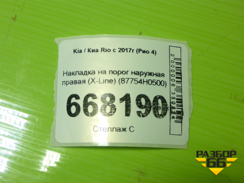 Накладка на порог наружная правая (X-Line) (87754H0500) для Kia Rio с 2017г (Рио 4) в Челябинске