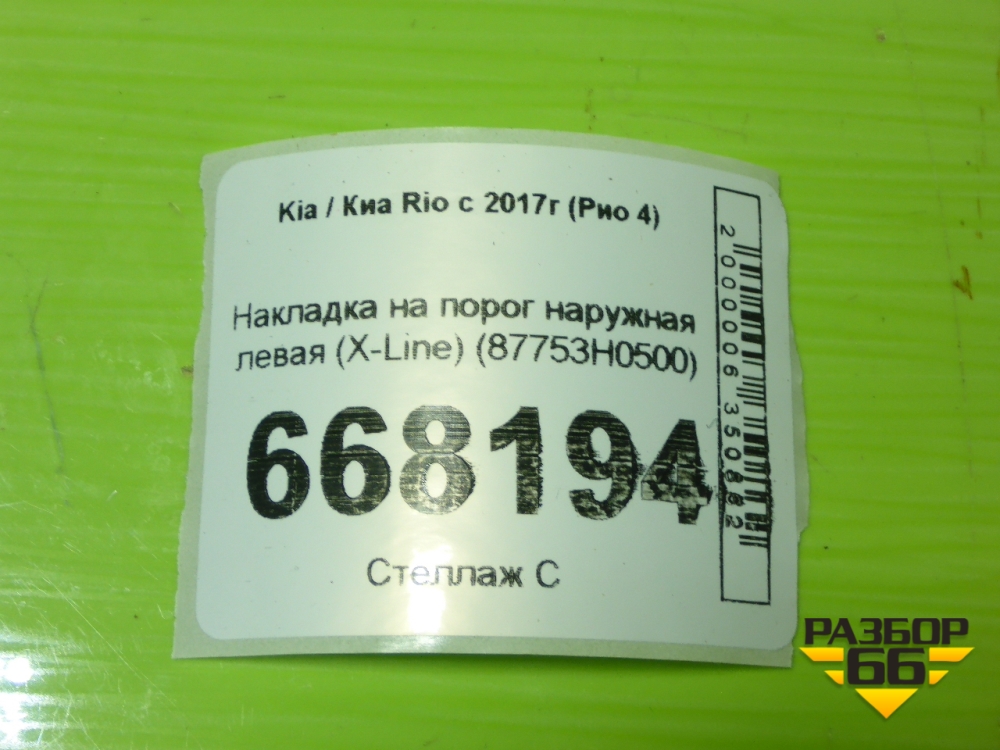Накладка на порог наружная левая (X-Line) (87753H0500) для Kia Rio с 2017г (Рио 4) в Челябинске