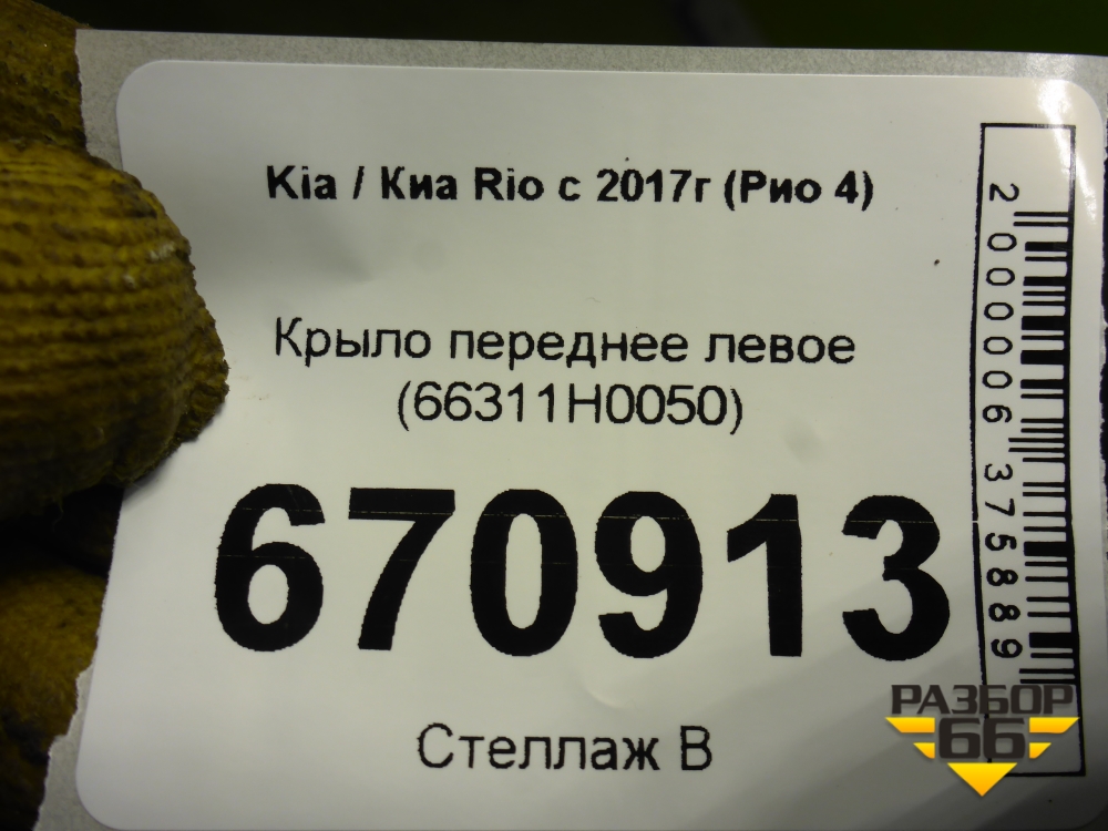Крыло переднее левое (66311H0050) для Kia Rio с 2017г (Рио 4) в Челябинске