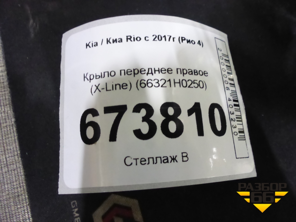 Крыло переднее правое (X-Line) (66321H0250) для Kia Rio с 2017г (Рио 4) в Челябинске