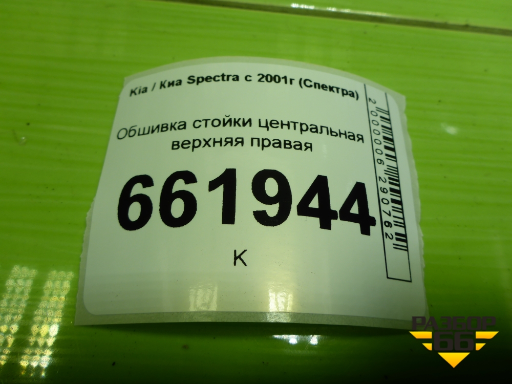 Обшивка стойки центральная верхняя правая (22725402210) для Kia Spectra с 2001г (Спектра) в Челябинске