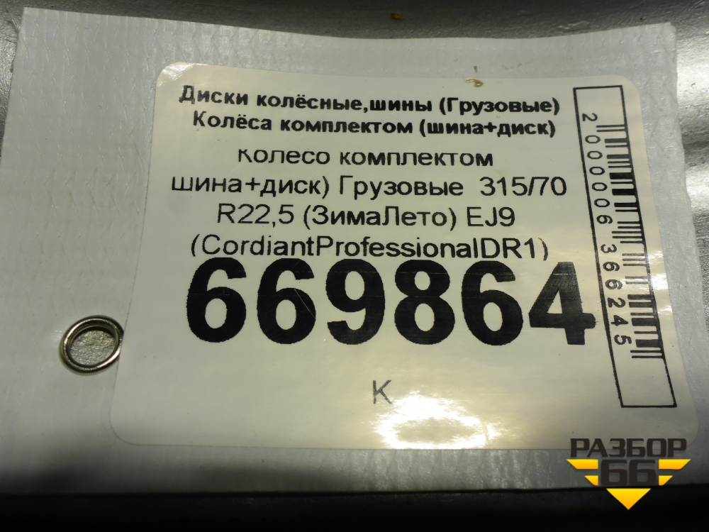 Колесо комплектом (шина+диск) 315/70 R22,5 (ЗимаЛето) EJ9 (CordiantProfessionalDR1) в Челябинске