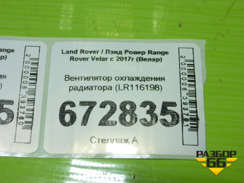 Вентилятор охлаждения радиатора (LR116198) для Land Rover Range Rover Velar с 2017г (Велар) в Челябинске