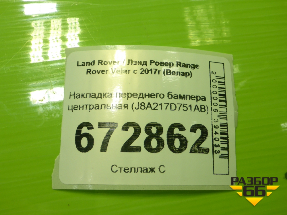 Накладка переднего бампера центральная (J8A217D751AB) для Land Rover Range Rover Velar с 2017г (Велар) в Челябинске