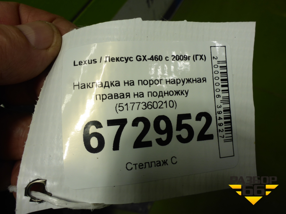 Накладка на порог наружная правая на подножку (5177360210) для Lexus GX-460 с 2009г (ГХ) в Челябинске