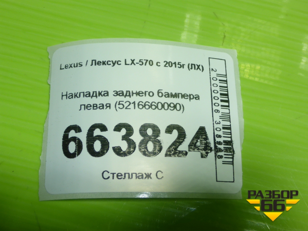 Накладка заднего бампера левая (5216660090) для Lexus LX-570 с 2015г (ЛХ) в Челябинске