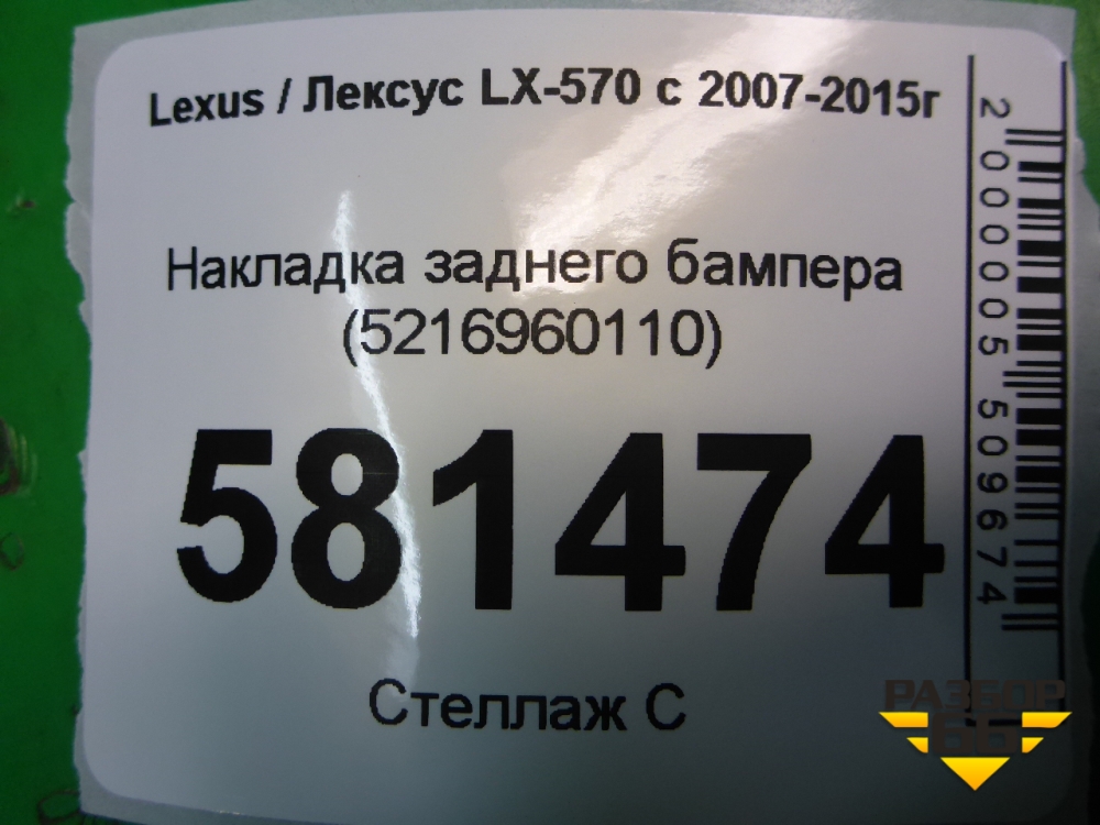 Накладка заднего бампера (5216960110) для Lexus LX-570 с 2007-2015г (ЛХ) в Челябинске
