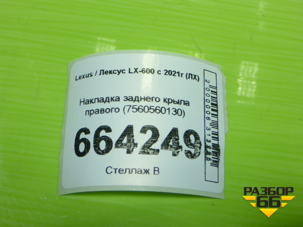 Накладка заднего крыла правого (7560560130) для Lexus LX-600 с 2021г (ЛХ) в Челябинске