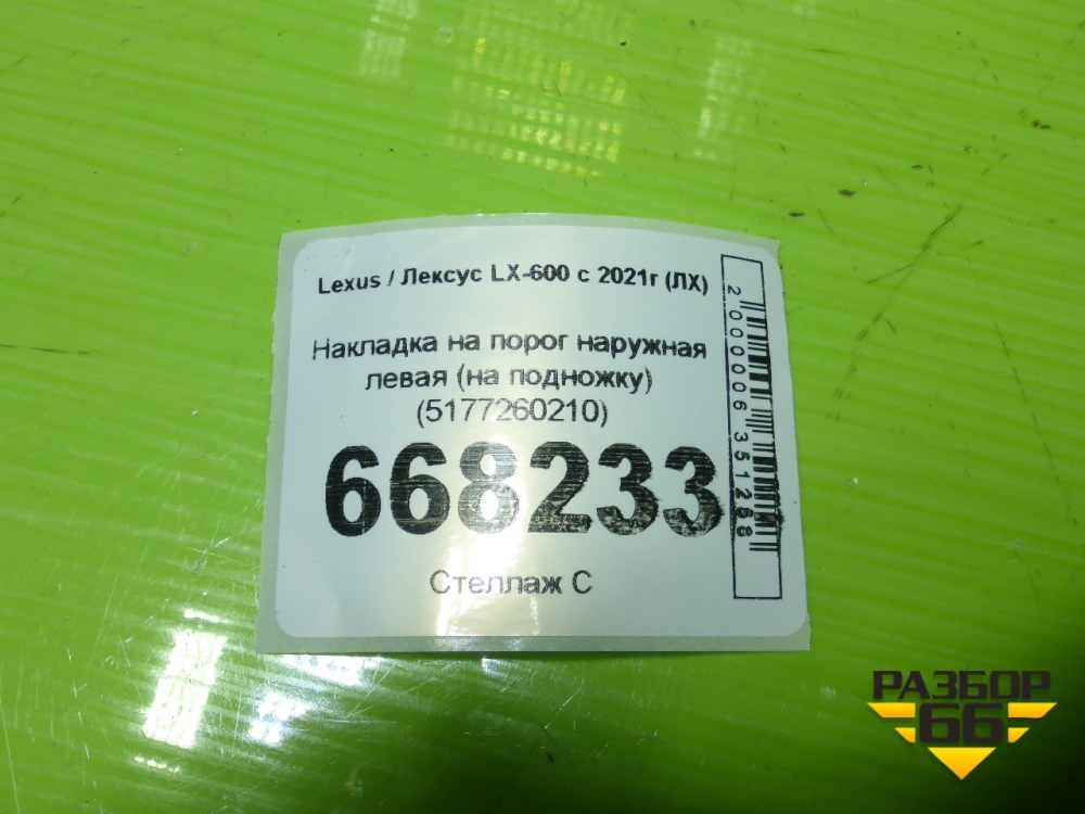 Накладка на порог наружная левая (на подножку) (5177260210) для Lexus LX-600 с 2021г (ЛХ) в Челябинске