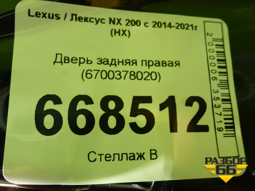 Дверь задняя правая (6700378020) для Lexus NX 200 с 2014-2021г (НХ) в Челябинске