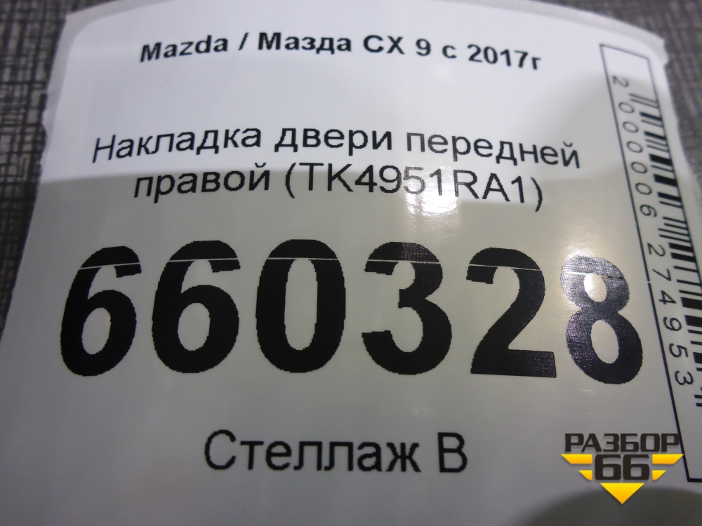 Накладка двери передней правой (TK4951RA1) для Mazda CX 9 с 2017г (СХ9) в Челябинске