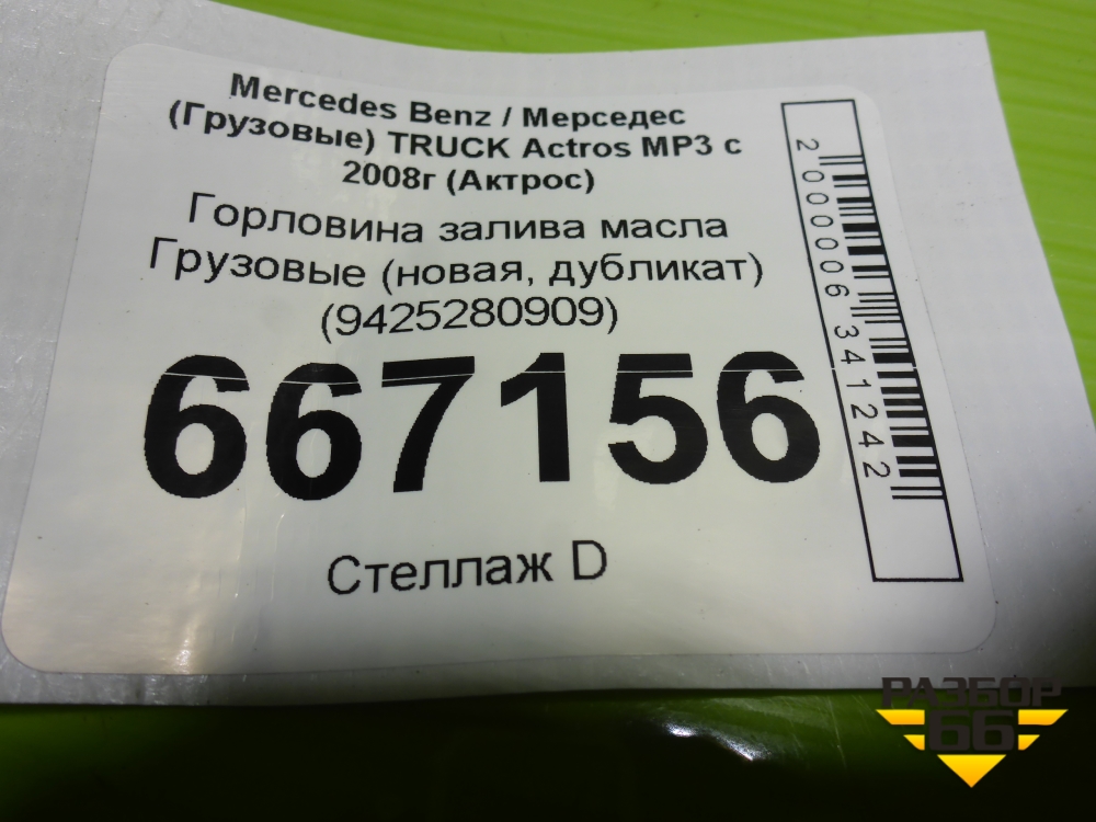 Горловина залива масла (новая, дубликат) (9425280909) для Mercedes Benz TRUCK Actros MP3 с 2008г (Актрос) в Челябинске