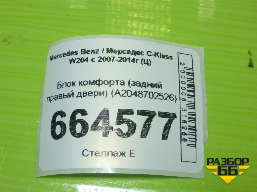 Блок комфорта (задний правый двери) (A2048702526) для Mercedes Benz C-Klass W204 с 2007-2014г (Ц) в Челябинске