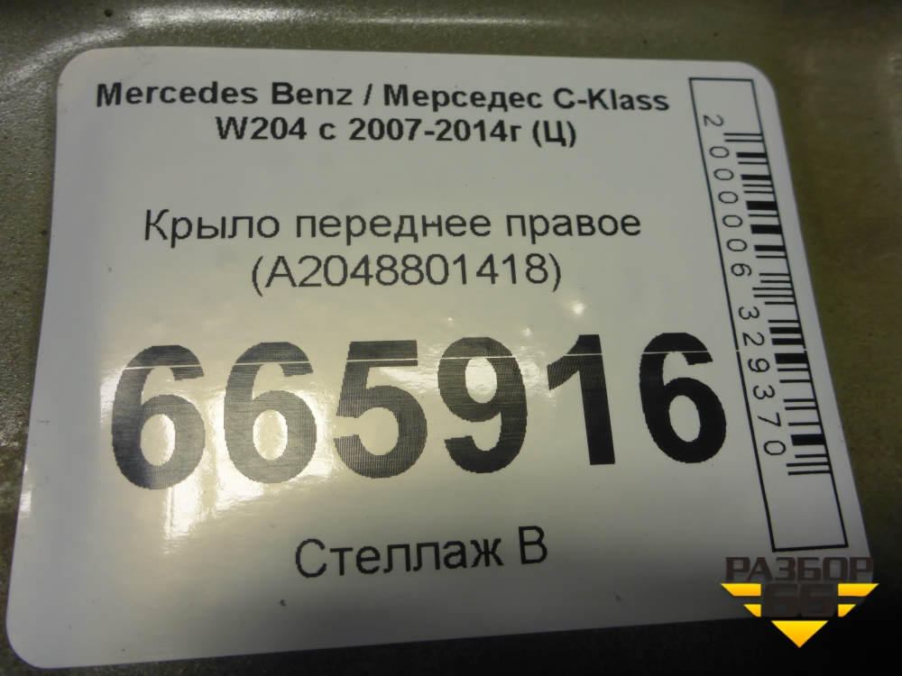 Крыло переднее правое (A2048801418) для Mercedes Benz C-Klass W204 с 2007-2014г (Ц) в Челябинске