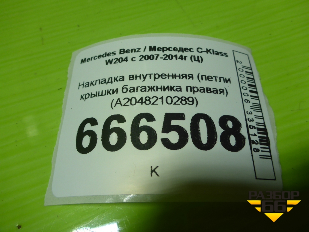 Накладка внутренняя (петли крышки багажника правая) (A2048210289) для Mercedes Benz C-Klass W204 с 2007-2014г (Ц) в Челябинске