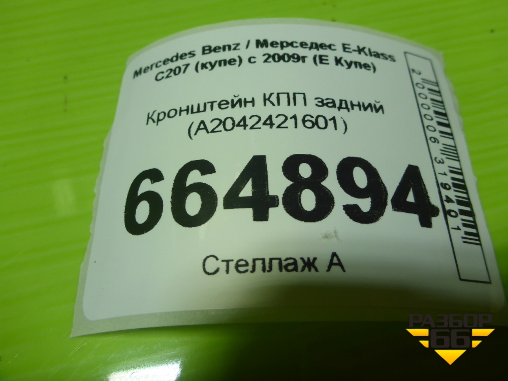 Кронштейн КПП задний (A2042421601) для Mercedes Benz E-Klass C207 (купе) с 2009г (Е Купе) в Челябинске
